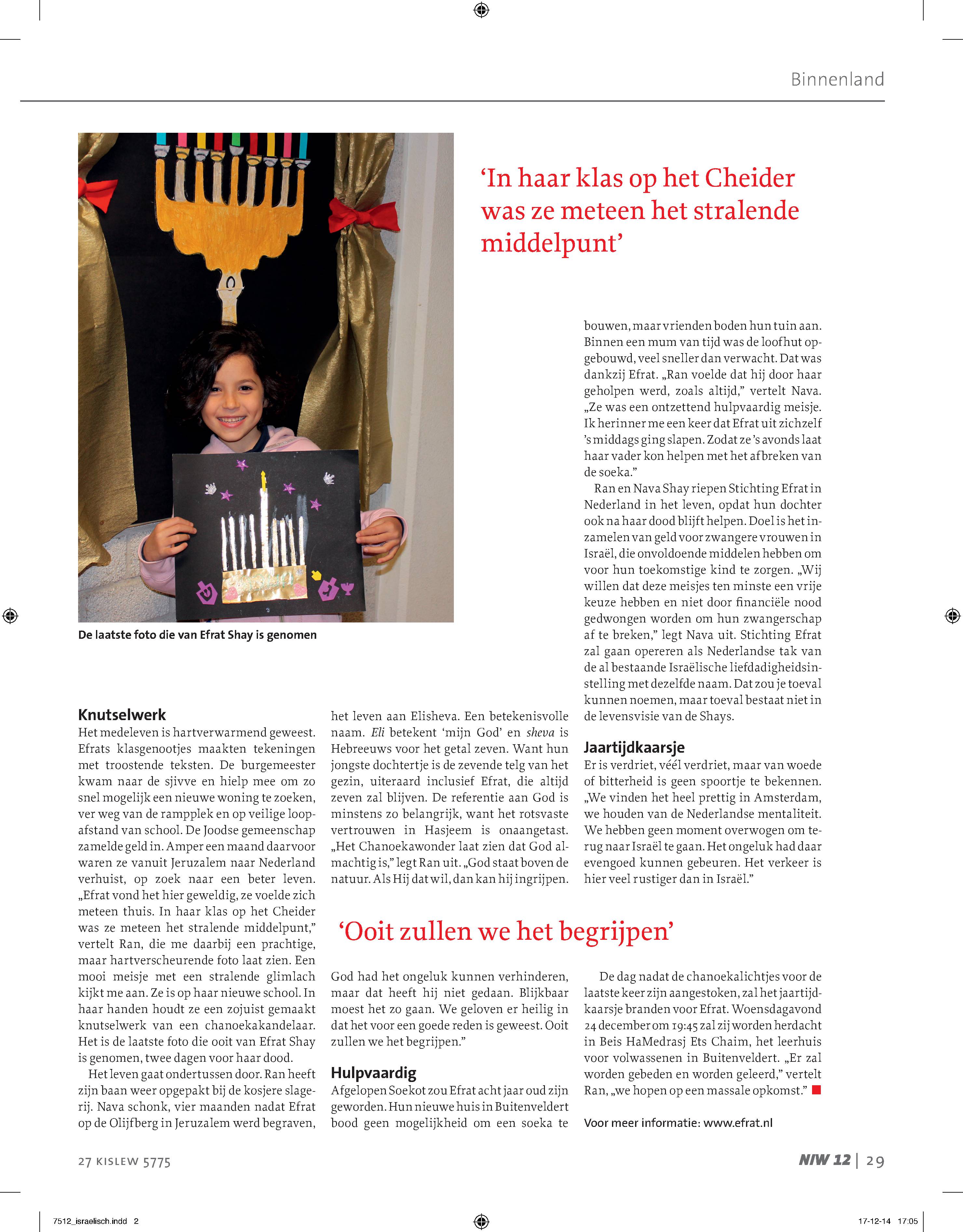 Onlangs verschenen er artikelen over Efrat in de diverse media. U kunt een deel van hen hier nalezen: